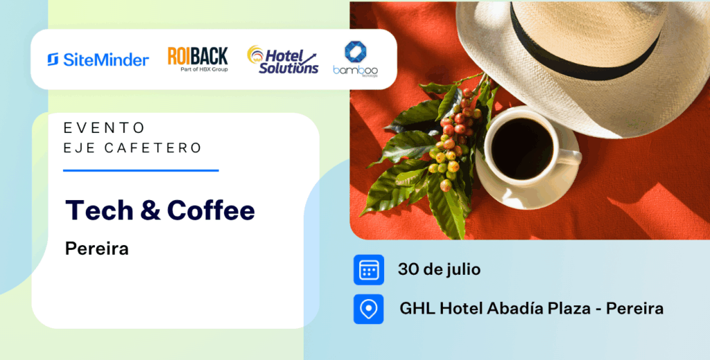 SiteMinder, RoiBack, Bamboo y Hotel Solutions te esperan en Manizales el próximo 31 de julio para compartirte las mejores soluciones tecnológicas para tu negocio hotelero.